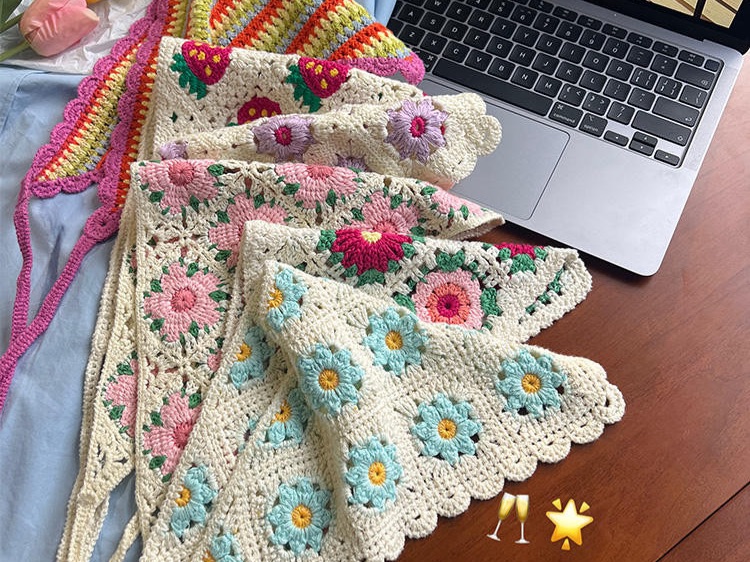 Dây cột tóc vải thô thêu viền 4 tầng