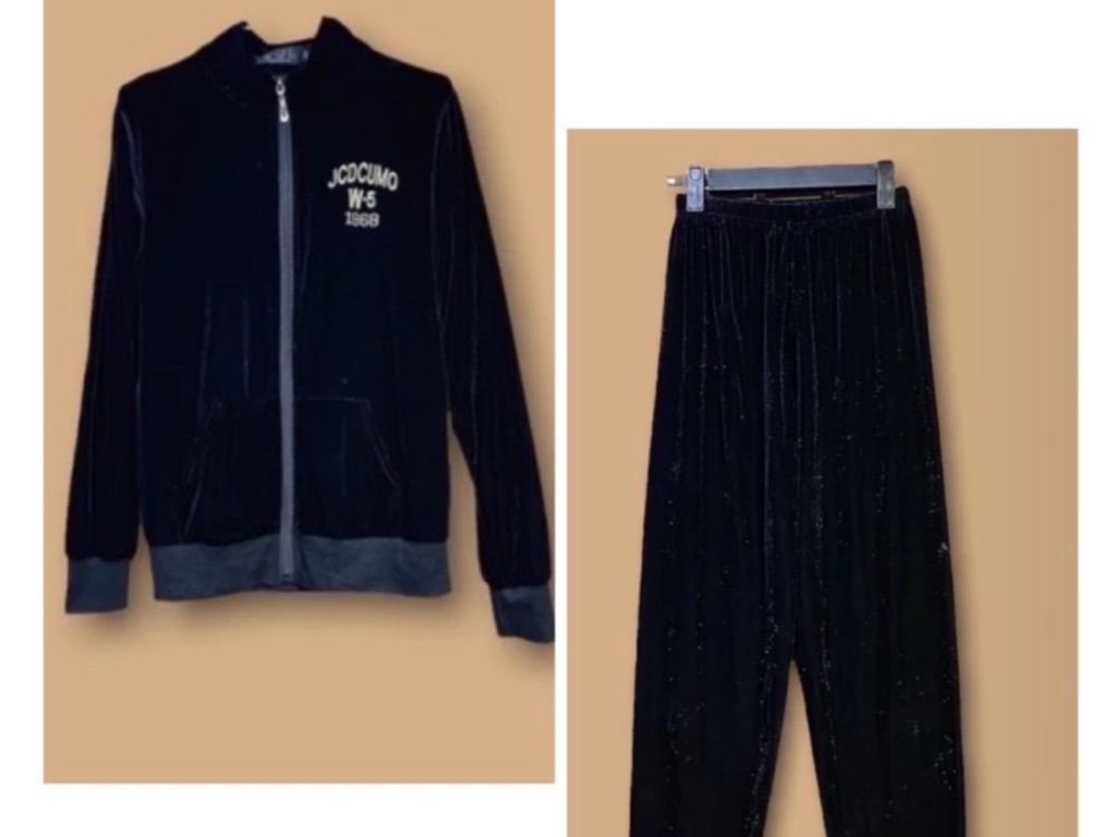 Nhung đen Áo khoác + Quần