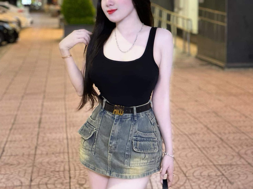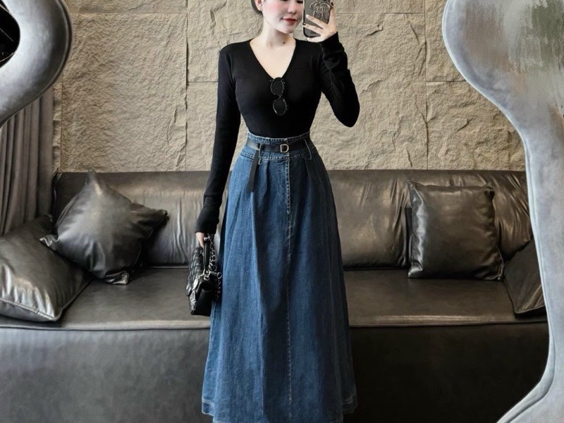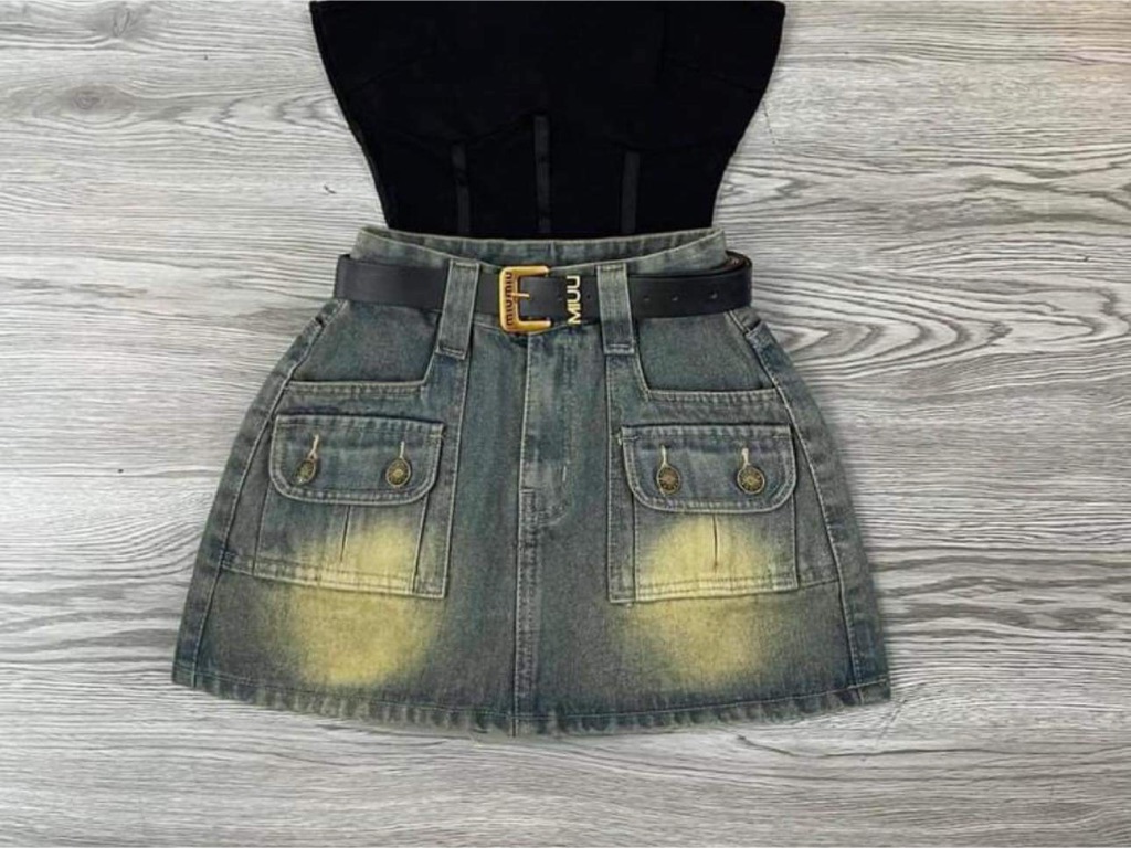 Chân váy jean túi hộp