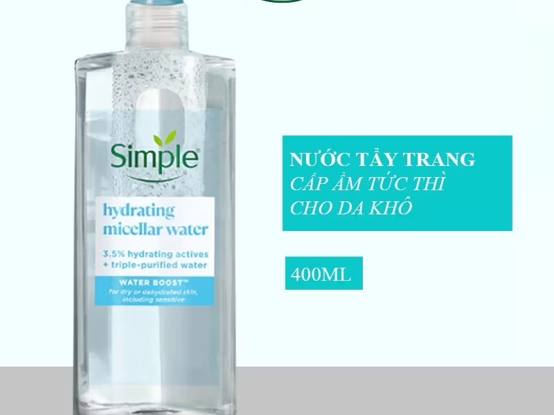 Nước tẩy trang Simple Water Boost Hydrating Micellar 400ml cấp ẩm cho da khô màu xanh dương