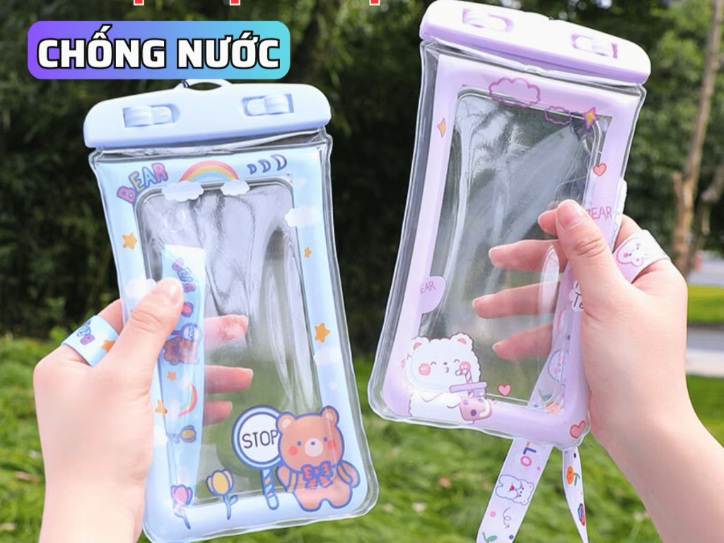 Túi Bọc Điện Thoại CHỐNG NƯỚC Viền Phao Hoạt Hình DINO Túi Chống Nước Điện Thoại Kèm Dây Đeo
