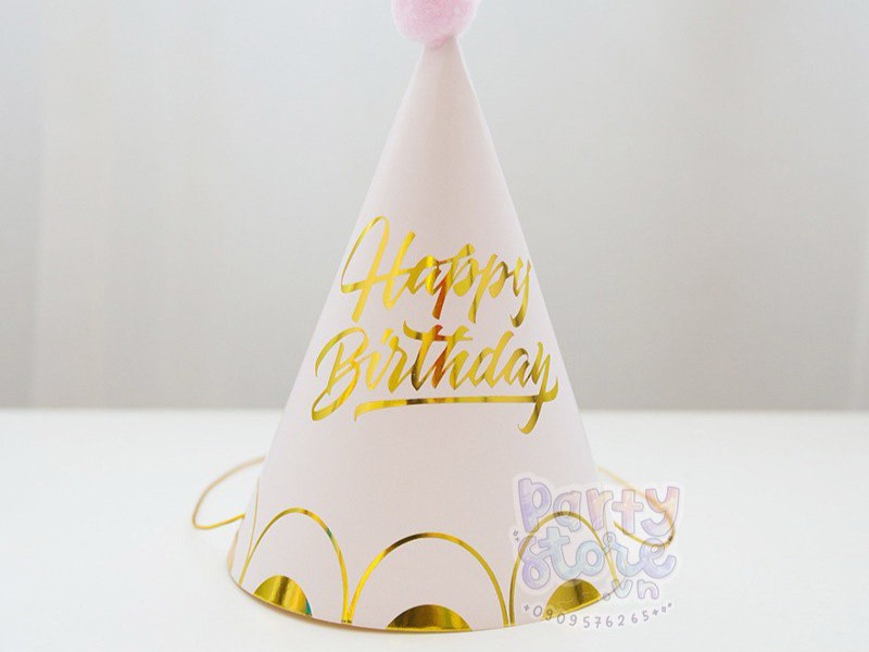 Nón sinh nhật ép kim hồng